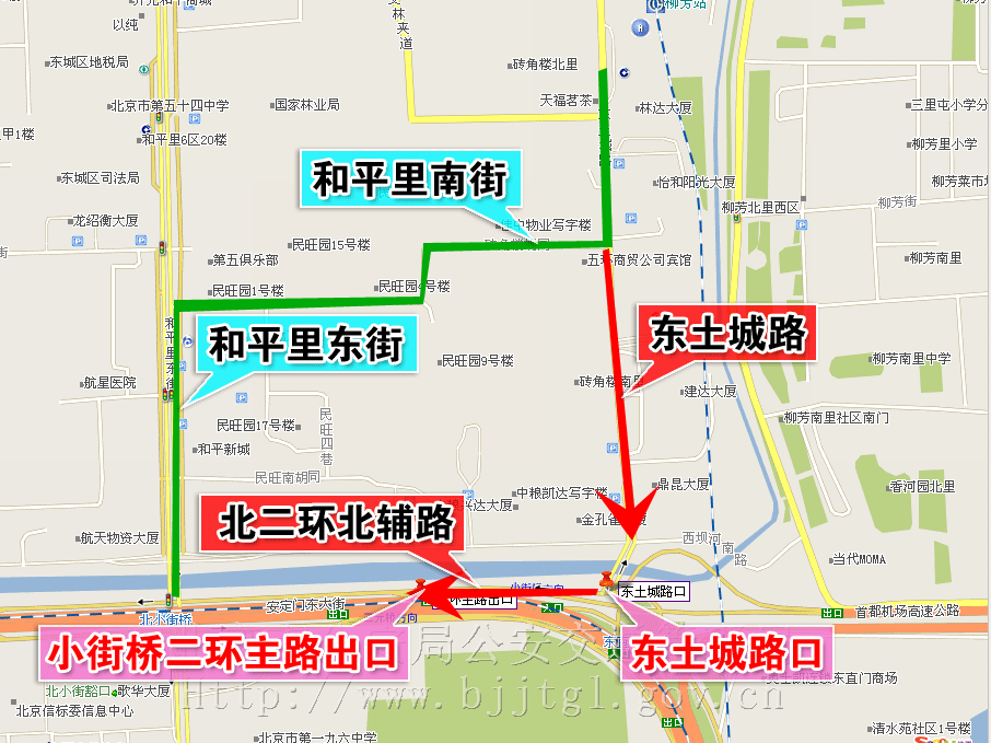 经有关部门批准,东城区北二环北辅路将进行桥梁吊装施工。为保证施工期间的道路交通安全与畅通,根据《中华人民共和国道路交通安全法》及《中华人民共和国道路交通安全法实施条例》的有关规定,决定自2009年8月27日起至2009年9月7日止,每天零时至5时,东城区北二环北辅路东土城路口至小街桥东侧二环主路出口及东土城路和平里南街至北二环北辅路北向南方向禁止机动车通行。机动车可绕行东土城路、和平里南街、和平里东街。