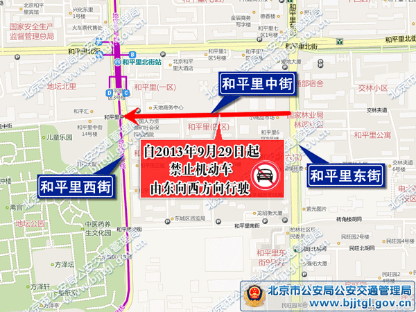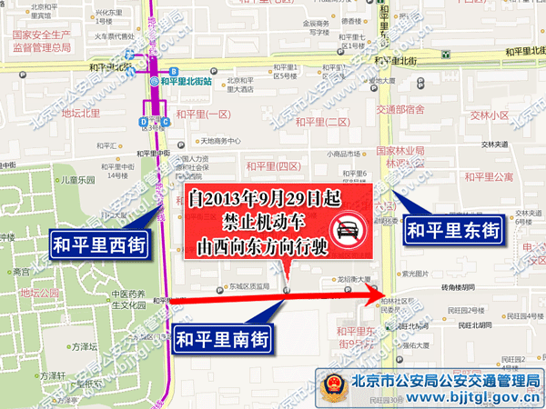 为保证东城区和平里地区的道路交通安全与畅通,根据《中华人民共和国道路交通安全法》的有关规定,决定自2013年9月29日起,对东城区和平里地区部分道路采取以下交通管理措施,具体如下: