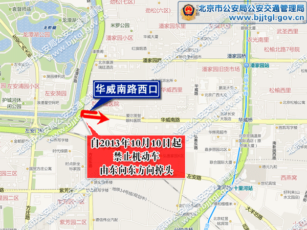 关于朝阳区华威南路西口禁止机动车由东向东掉头的通告