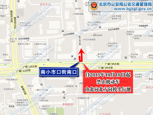 关于东城区南小市口街南口禁止机动车由北向北方向掉头的通告