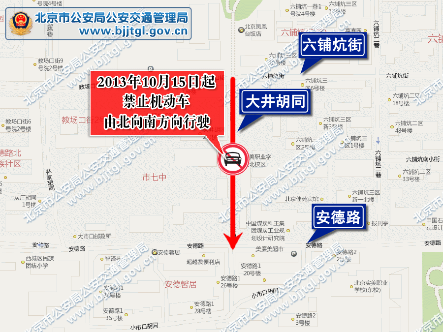 关于西城区大井胡同禁止机动车由北向南方向行驶的通告