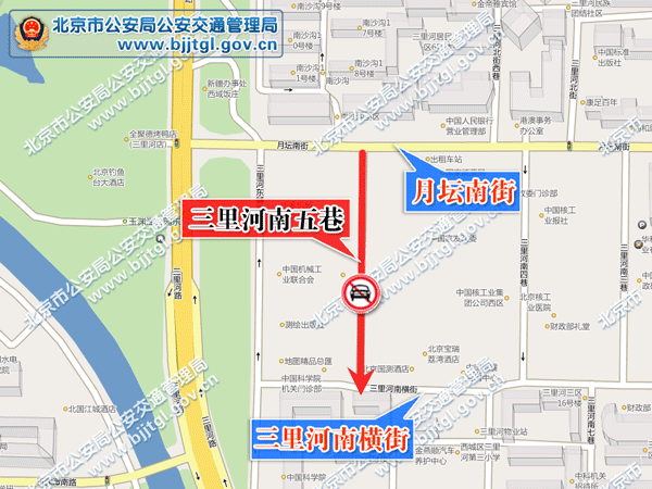 为保障西城区三里河地区的道路交通安全与畅通,根据《中华人民共和国道路交通安全法》的有关规定,决定自2011年10月10日起,三里河南五巷(月坛南街至三里河南横街)由禁止机动车由南向北方向行驶调整为禁止机动车由北向南方向行驶。