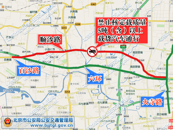 为保证顺沙路道路施工期间的交通安全与畅通,根据《中华人民共和国道路交通安全法》的有关规定,决定自2012年2月17日起至2012年2月29日止,顺沙路(昌平区百沙路至顺义区火寺路之间路段)禁止核定载质量5吨(含)以上载货汽车通行。载货汽车可绕行六环路或火寺路。