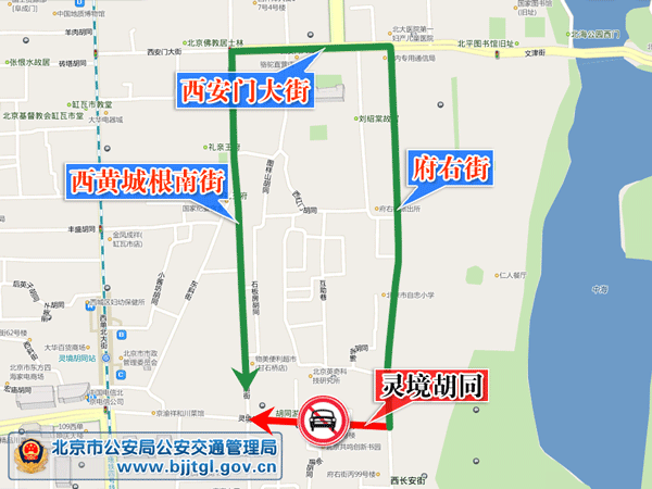 关于西城区灵境胡同部分路段禁止机动车由东向西行驶的通告