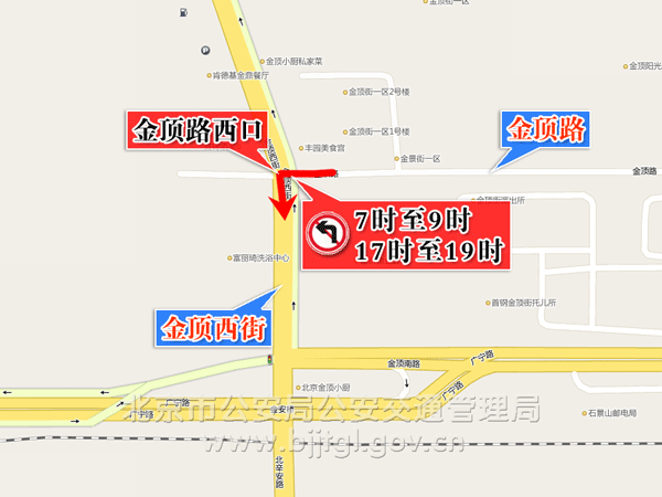 关于石景山区金顶路西口禁止机动车由东向南左转弯的通告