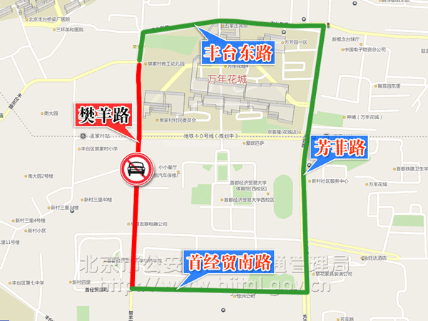 关于丰台区樊羊路施工期间部分路段禁止机动车通行的通告