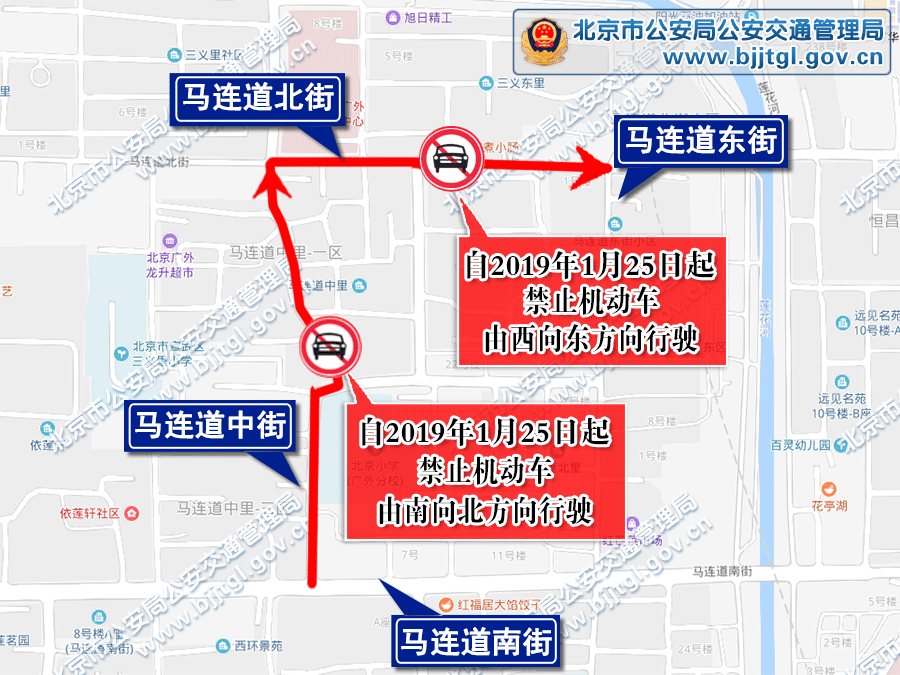 为保证西城区马连道中街、马连道北街的交通安全与畅通,根据《中华人民共和国道路交通安全法》的有关规定,决定自2019年1月25日起,对马连道中街和马连道北街采取以下交通管理措施: