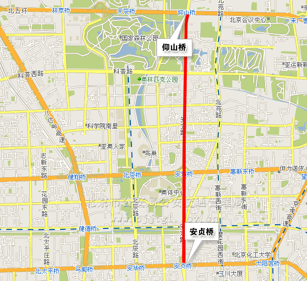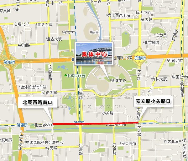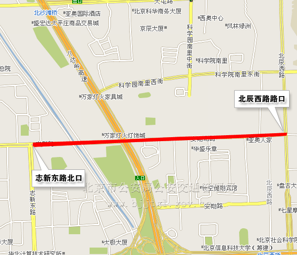 (二)由北三环路安华桥(不含)向北,经北辰路至北土城路口向北,途经车辆绕行八达岭高速公路。(点击查看地图)