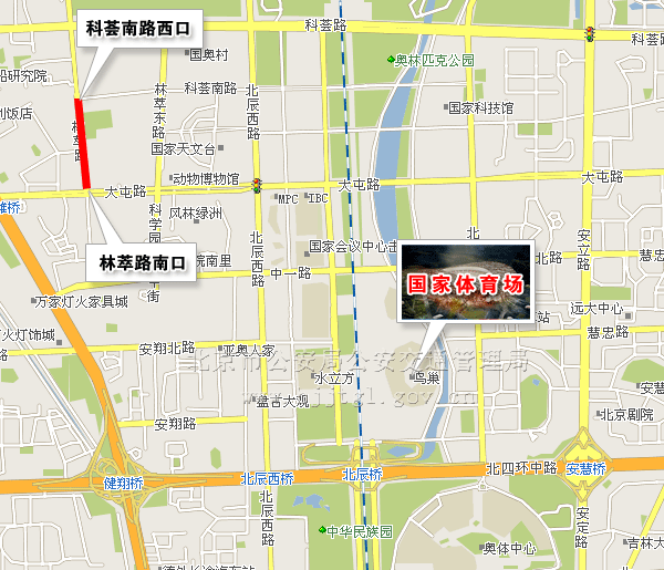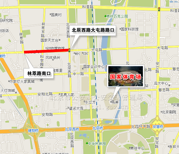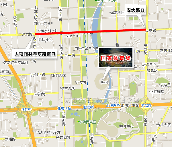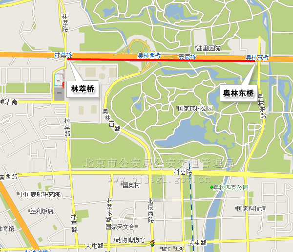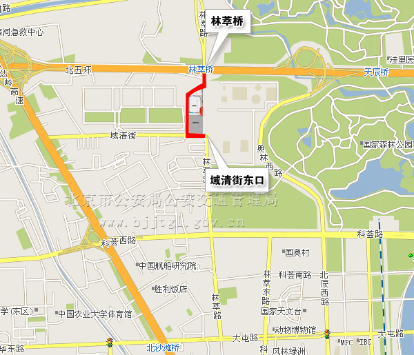 (六)由北辰西路大屯路路口向西至林萃路南口双向主辅路(不含地下隧道),除残奥会专用车辆、残奥会公交专线车辆和持有开幕式专用车证的车辆及持开幕式入场券的残疾人乘坐的出租车、残疾人机动轮椅车外,禁止其他车辆通行。(点击查看地图)