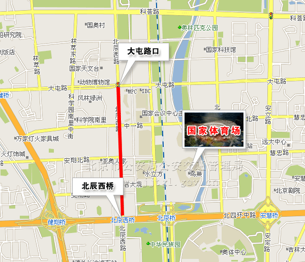(五)由北辰西桥向北,经北辰西路至大屯路口双向主辅路,除残奥会专用车辆、残奥会公交专线车辆和持有开幕式专用车证的车辆,持开幕式入场券的残疾人乘坐的出租车、残疾人机动轮椅车(出租车可在就近观众安检口落客后驶离),以及持有残奥会专用证件、开幕式入场券的人员外,禁止其他车辆、人员通行。(点击查看地图)