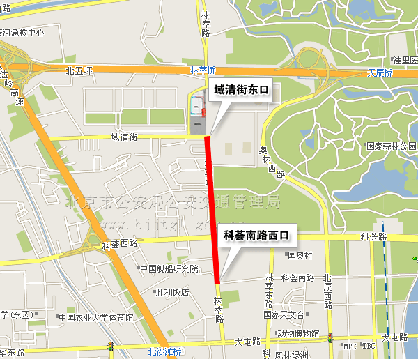 (八)由科荟南路西口向北,经林萃路至域清街东口(含)双向,除残奥会专用车辆、残奥会公交专线车辆和持有开幕式专用车证的车辆,持开幕式入场券的残疾人乘坐的出租车、残疾人机动轮椅车,以及持有残奥会专用证件、开幕式入场券的人员外,禁止其他车辆、人员通行。(点击查看地图)