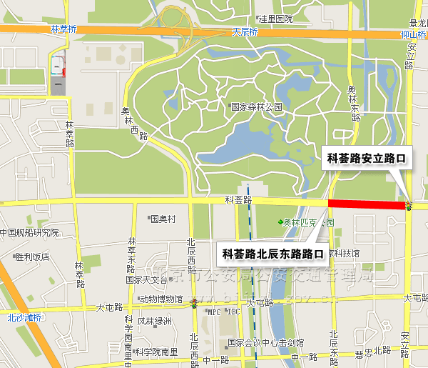(一)科荟路由安立路口(不含)向西,经科荟路至北辰东路路口(含),除残奥会专用车辆、残奥会公交专线车辆、管控区车辆和持有开幕式专用车证的车辆,持开幕式入场券的残疾人乘坐的出租车、残疾人机动轮椅车,以及持有残奥会专用证件、开幕式入场券的人员外,禁止其它车辆、人员通行。(点击查看地图)