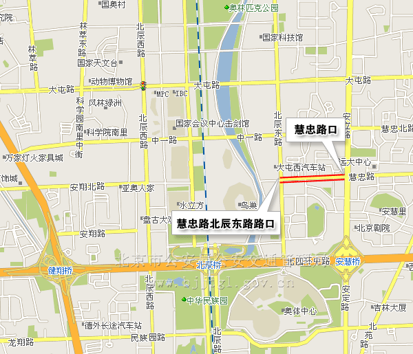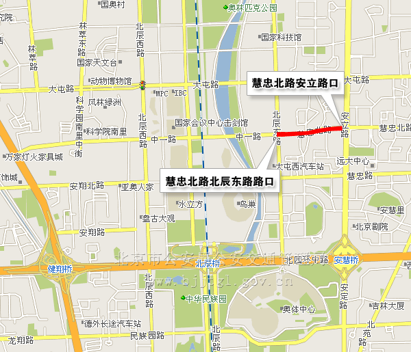 (四)慧忠北路由安立路口(不含)向西,经慧忠北路至北辰东路路口(含),除残奥会专用车辆、公共汽车、管控区车辆和持有开幕式专用车证的车辆,持开幕式入场券的残疾人乘坐的出租车、残疾人机动轮椅车,以及持有残奥会专用证件、开幕式入场券的人员外,禁止其他车辆、人员通行。(点击查看地图)