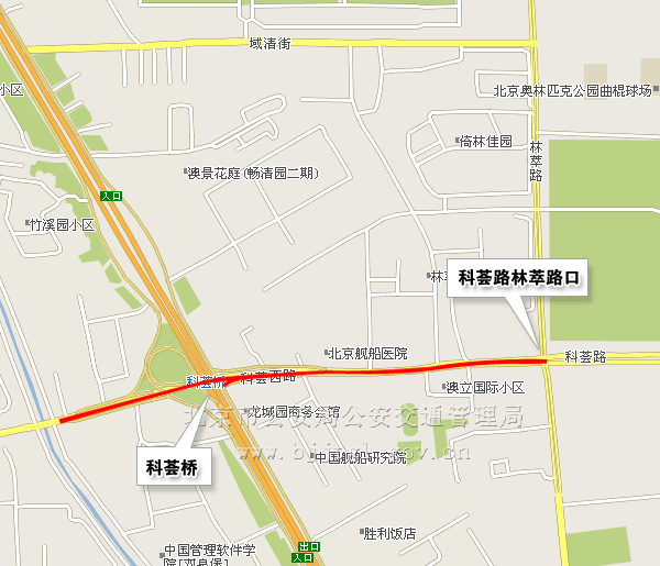 (六)科荟路由八达岭高速公路科荟桥西侧西向东主路出辅路路口(不含),经科荟路至科荟路林萃路口(含);由八达岭高速公路科荟桥东侧辅路至科荟路林萃路口(含),除残奥会专用车辆、残奥会公交专线车辆和管控区车辆,以及持开幕式入场券的残疾人乘坐的出租车、残疾人机动轮椅车外,禁止其他机动车通行。(点击查看地图)