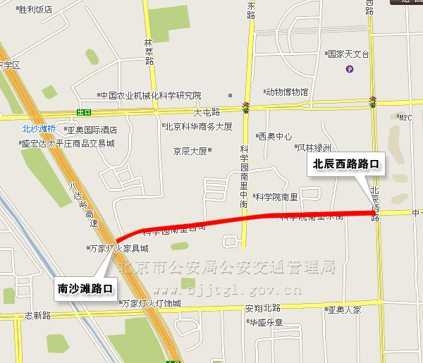 (八)由八达岭高速公路东侧辅路南沙滩路口至北辰西路路口,除残奥会专用车辆、残奥会公交专线车辆和管控区车辆,以及持开幕式入场券的残疾人乘坐的出租车、残疾人机动轮椅车,禁止其他机动车通行。沿线居民小区、单位的车辆可以凭驾驶人的有效居住证明或车辆的登记证明通行。(点击查看地图)