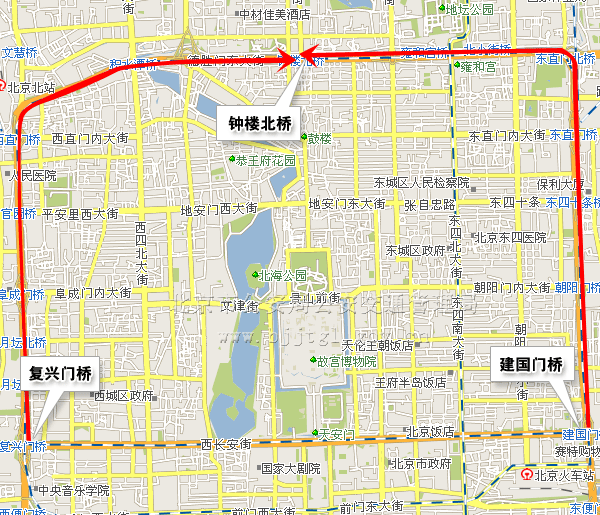 七、9月6日22时40分,由仰山桥向南经安立路、安定路小关路口向西,经北土城东路、北土城路口向南,经鼓楼外大街至钟楼北桥;由钟楼北桥向西,经北二环路、西二环路主路至复兴门桥;由钟楼北桥向东,经北二环路、东二环路主路至建国门桥,除残奥会专用车辆、开幕式专用车证的车辆、公共汽车,持开幕式入场券的残疾人乘坐的出租车、残疾人机动轮椅车外,顺行方向禁止其他车辆通行。(点击查看地图)