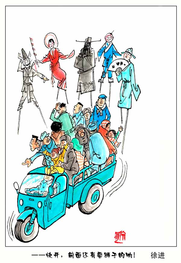 快开,前面还有耍狮子的呐! 徐进